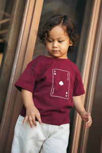 Bold and full of heart, our Lucky Ace Tee in rich burgundy is a standout from the ACE Collection. Featuring a soft cream Ace of Spades card at its center, this design is all about celebrating individuality and confidence. Made in our signature oversized fit, it’s a piece that feels just as special as the little one wearing it. The perfect blend of playfulness and polish — made for making memories.